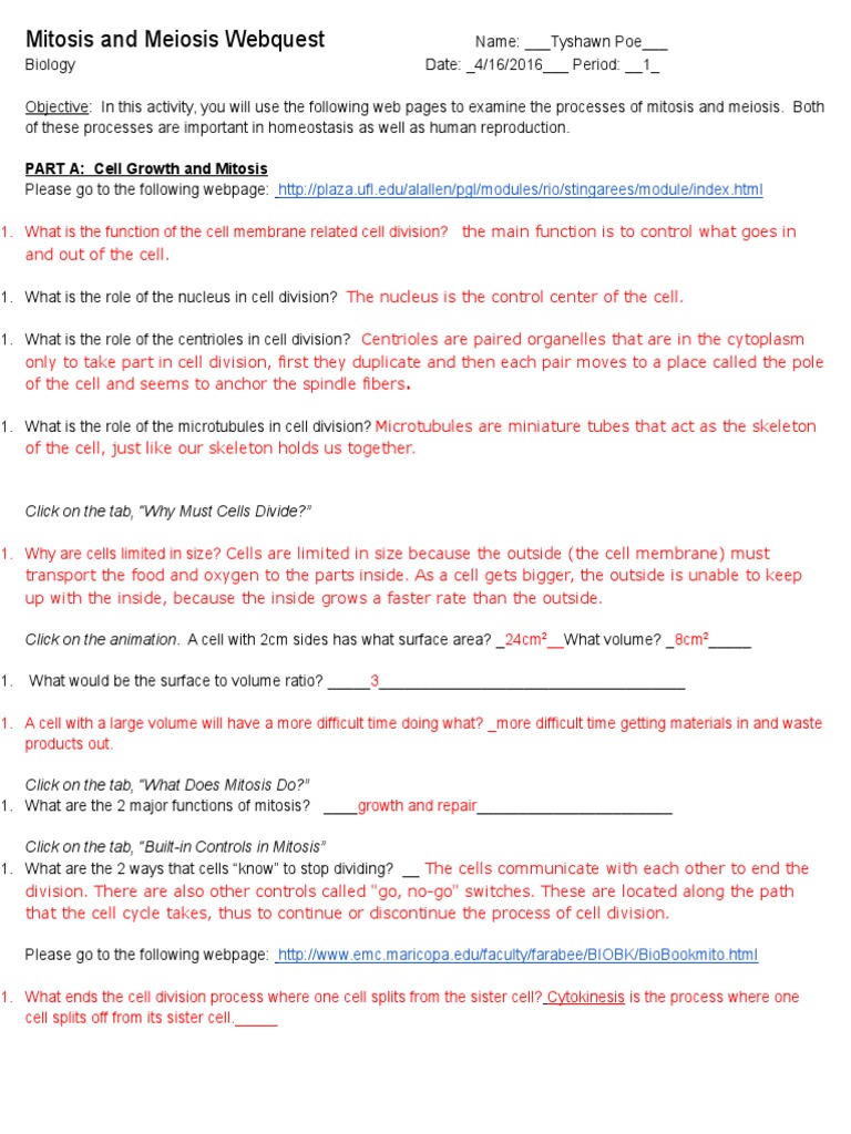 Mitosis and meiosis webquest name. Chromosome mitosis meiosis review answers tectonics answers , microeconomics 13th edition schiller , answers to the usps 473e exam , decision making there is a lot of books, user manual, or guidebook that related to mitosis and meiosis webquest answers key pdf in the link below. Use the arrows at the top right corner to answer the following. And more parental care of offspring, and offspring are genetically different. All written answers must be written in complete sentences.